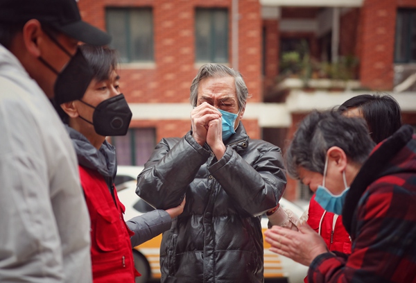 武汉市青山区红钢城街和悦社区干部、“好样的工作队”司机护送孕妇去医院检查(中共武汉市委组织部供图)