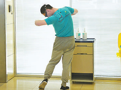 近日,在武汉协和医院,一名援鄂北京医疗队队员脱下防护服后发现浑身已经被汗浸湿。