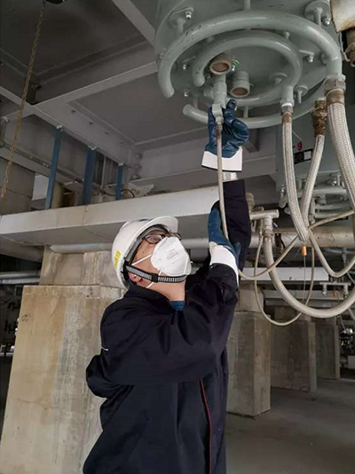 作为设备电仪检修主力,张杰每日都与电仪团队同事坚守在战疫最前线,时刻准备奔赴现场。不久前,GC公司污水处理池的传输泵出现异常,污水即将满溢,储罐作业脱水无法进行。张杰在接到任务后,即刻集结仪表检修团队,从家自驾前往岙山故障现场。他们不畏凛冽的寒风,在与现场操作人员细致沟通后,便展开了排查作业。经过仔细排查,最终将问题指向液位控制部分。根据张杰丰富的经验,迅速判断出液位计测到的值非实际液面。他立即打开并拆除液位计,发现液位计的导波管壁挂附多个油块,断定为油块杂波反射引起的液位计显示异常。故障确认后,张杰团队随即展开抢修。历经3个小时之后,张杰和其团队成员凭借过硬的技术和不懈努力,对液位计与液位控制器进行了多次参数调整,最终确定合理值,有效避开了杂波干扰,获取到精确的液位值,成功地解决了一项技术难题。