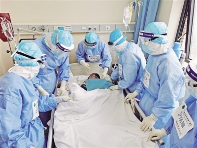 在武汉大学人民医院东院区,一位35岁的男性患者身体强壮,刚来的时候还能坐在凳子上与大家聊天,可5天后,他的病情就转为极危重症。2月13日早上,患者的病情突然恶化,血氧饱和度直线下降,出现严重的呼吸衰竭。“快,做气管插管!”丁仁彧迅速判断。但这个由妇产科普通病房临时改造而来的重症病房不具备负压系统,在打开呼吸道进行气管插管的瞬间,含有大量病毒的分泌物会喷涌而出,医护人员面临感染的巨大风险。