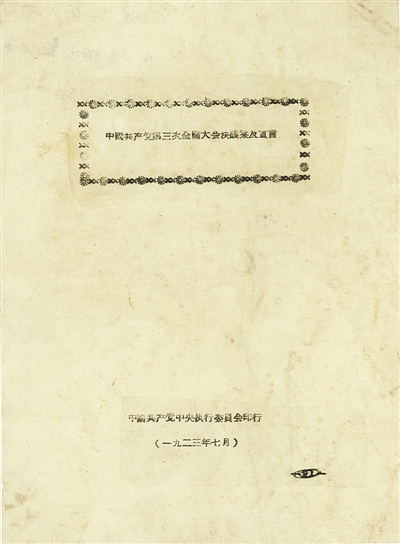 中共三大通过的决议案及宣言。中共三大会址纪念馆供图
