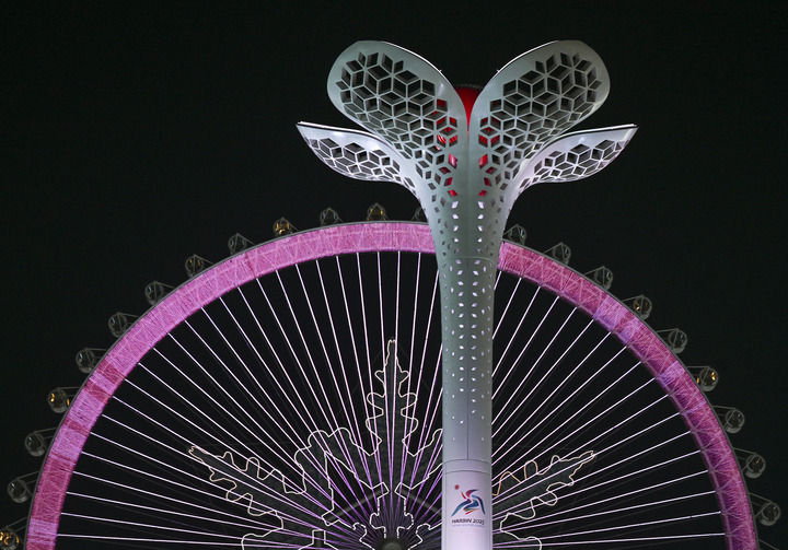 松花江畔的冰雪大世界景区里,中国天坛祈年殿遥对新加坡鱼尾狮,印度泰姬陵“遇见”卡塔尔卢塞尔体育场……亚奥理事会成员国家和地区的地标景观,以冰雪之姿与四海宾朋见面,展现出不同文明交流对话的美妙图景。