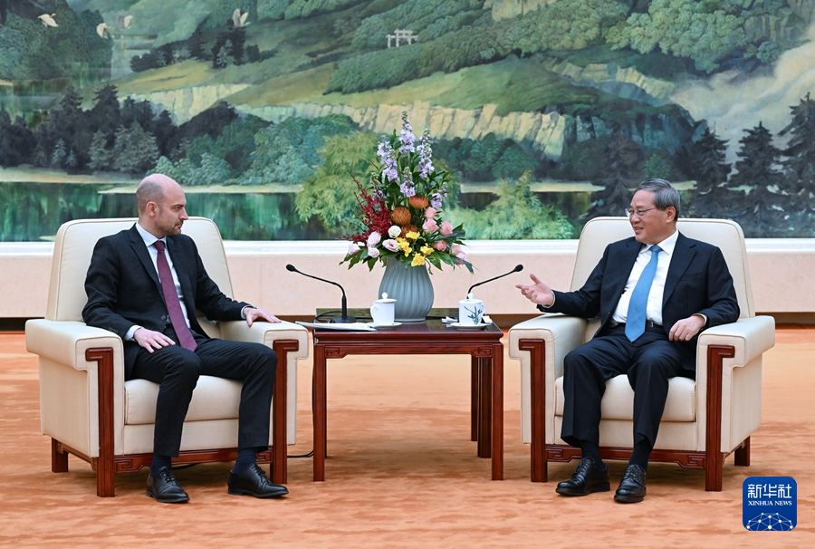 3月27日,国务院总理李强在北京人民大会堂会见法国外长巴罗。新华社记者 饶爱民 摄