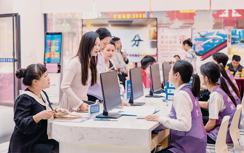 大力提振消费,需要加大就业支持力度,多渠道促进居民增收。零工市场以线上线下相结合的方式,为零散工、临时工、短期工等人群提供服务,有效促进劳动者多渠道灵活就业。图为2025年4月8日,广西梧州市万秀区零工市场,求职者向工作人员了解用工信息。人民图片 何华文/摄