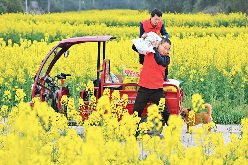 春耕备耕时节,各地组织党员干部走进田间地头,切实帮助农户解决实际困难。图为2025年3月20日,四川省眉山市仁寿县彰加镇铧炉村,党员干部正在为缺少劳力的农户送化肥和种子。人民图片 彭雅灵/摄
