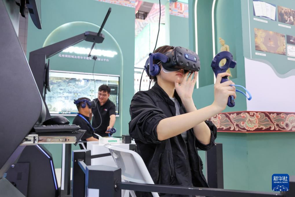 5月22日,观众在文博会甘肃展台体验VR游敦煌。