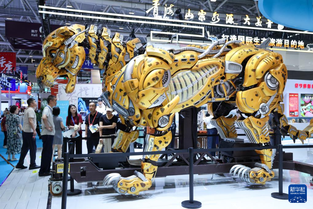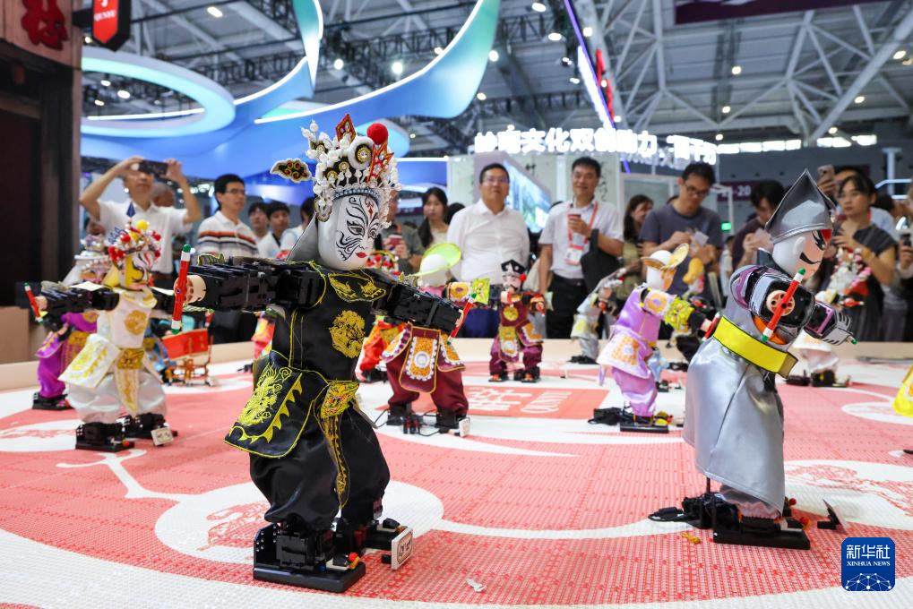 5月22日,观众在文博会辽宁展台观看机器人表演。