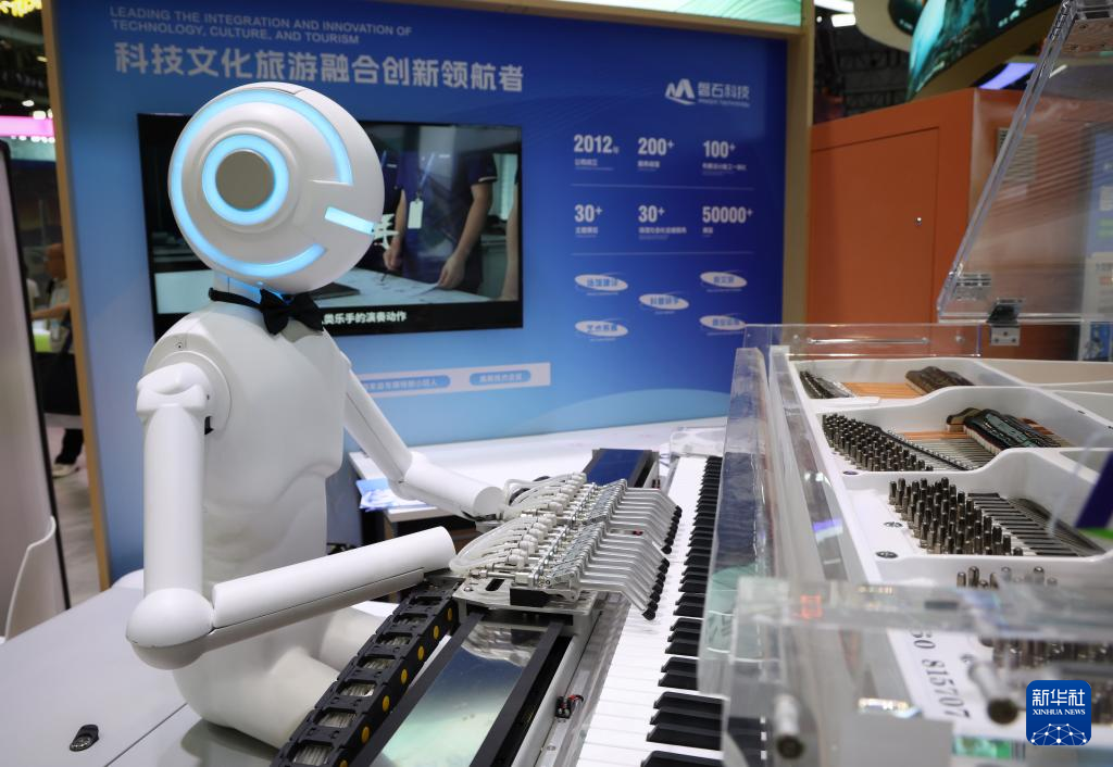 5月22日,机器人在文博会安徽展台磐石科技展区展示弹钢琴技艺。