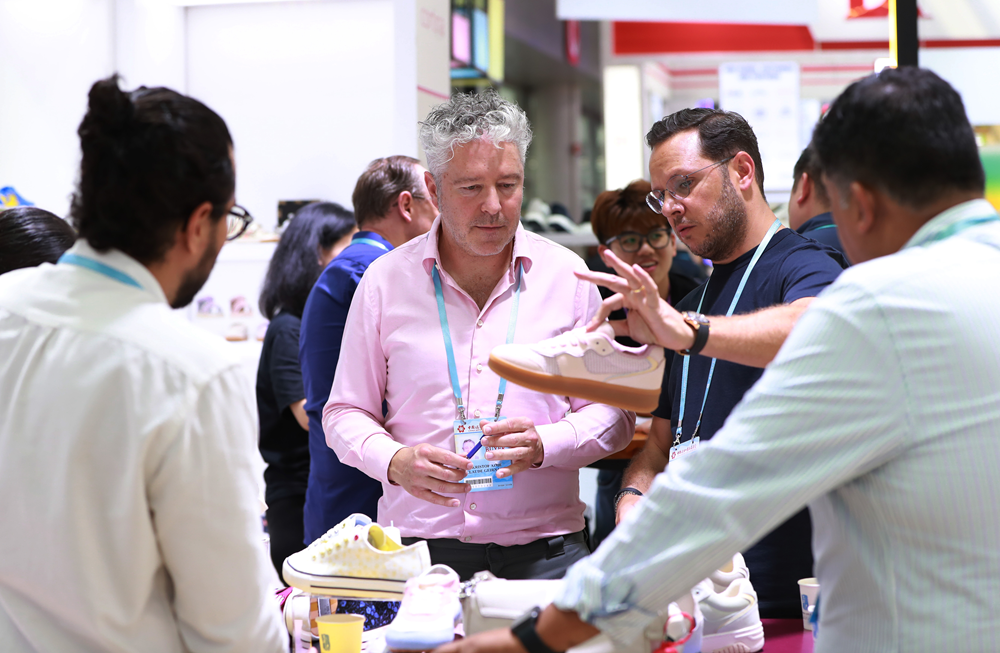 第137届广交会于2025年4月15日至5月5日分三期举行,第三期以“美好生活”为主题,有玩具及孕婴童、时尚、家用纺织品、文具、健康休闲5个板块,参展企业超过1.2万家。中小企业通过在广交会参展可以向全球买家展示产品和服务,并借此机会扩展海外市场。图为5月1日,境外采购商在鞋类展区里了解鞋类产品情况。新华社记者 王瑞平/摄