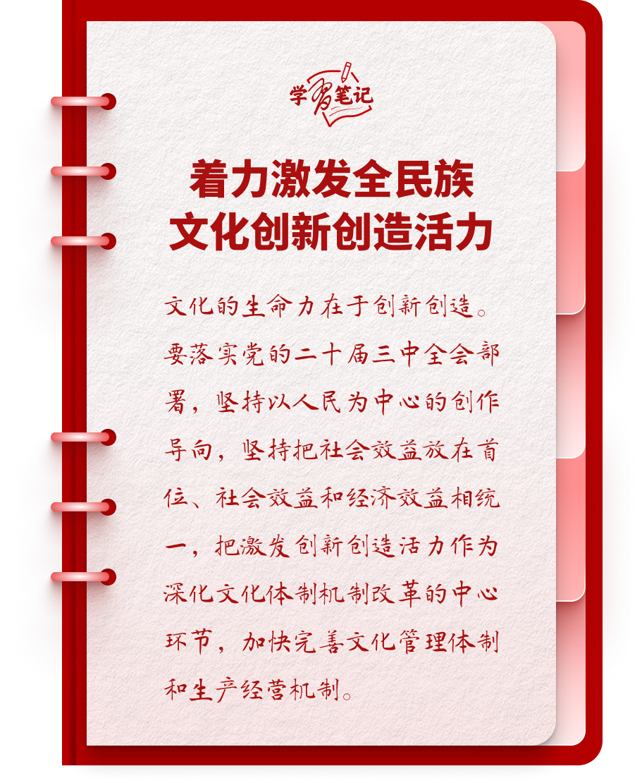 党的二十大和二十届三中全会都明确提出“激发全民族文化创新创造活力”,三中全会专门就深化文化体制机制改革作出全面部署。改革不是为了改而改,而是为了让创新创造的空间充分释放、源泉充分涌流。
