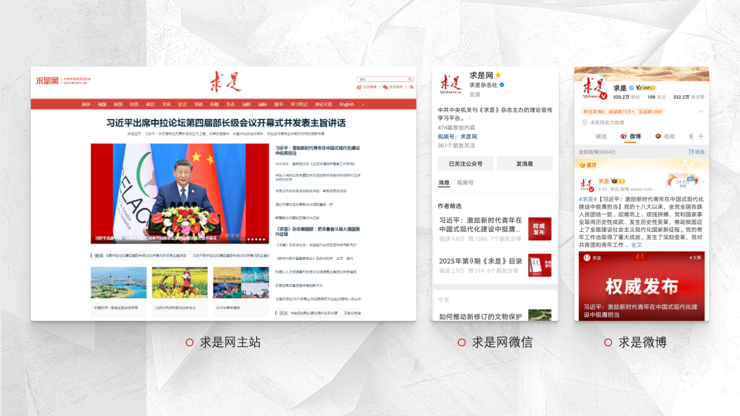 紧跟习近平总书记重要时政报道和《求是》杂志重要文章,紧扣党的二十届三中全会、全国两会、党纪学习教育等重大主题宣传,策划推出大量原创性网评、网文、图解、理论微视频等各类融媒体产品,全媒体、全方位、立体化宣传阐释习近平新时代中国特色社会主义思想。着力打造“求是网评论员”、“学而时习”、“是说新语”、“求是微视频”等特色品牌,逐步形成了以学习宣传习近平新时代中国特色社会主义思想为主要内容的新媒体传播矩阵。