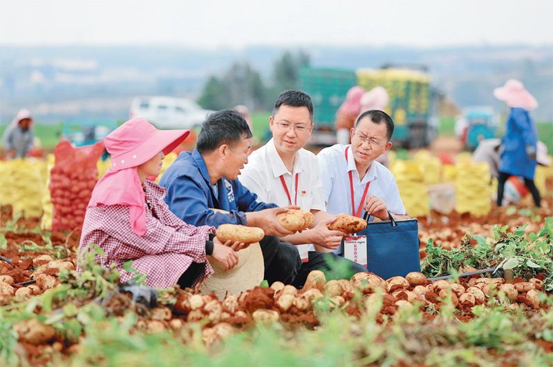 调查研究是谋事之基、成事之道。图为2025年5月14日,云南省曲靖市陆良县纪检监察干部在小百户镇普乐村走访马铃薯种植户,了解乡村振兴产业发展相关情况。 人民图片 王勇/摄