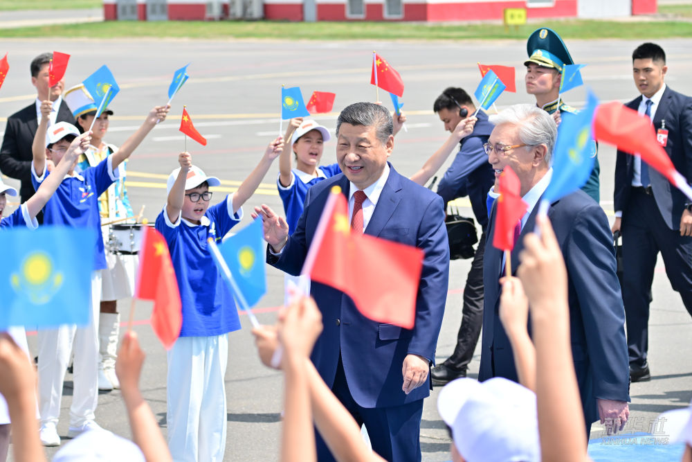当地时间6月16日中午,国家主席习近平乘专机抵达阿斯塔纳,应哈萨克斯坦共和国总统托卡耶夫邀请,出席第二届中国—中亚峰会。