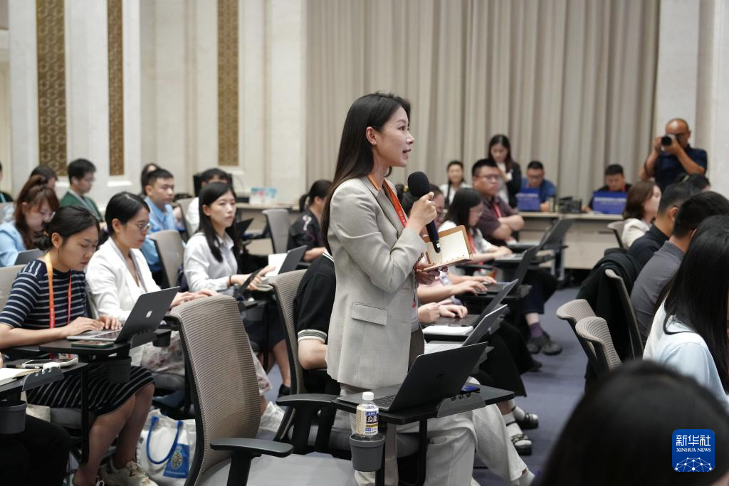 7月3日上午,国务院新闻办公室举行新闻发布会,文化和旅游部副部长卢映川、广电总局副局长刘建国、中央广电总台副台长王晓真、中国人民抗日战争纪念馆馆长罗存康介绍中国人民抗日战争暨世界反法西斯战争胜利80周年主题展览和推出优秀文艺作品、文艺活动有关情况,并答记者问。这是记者在发布会上提问。新华社记者 才扬 摄