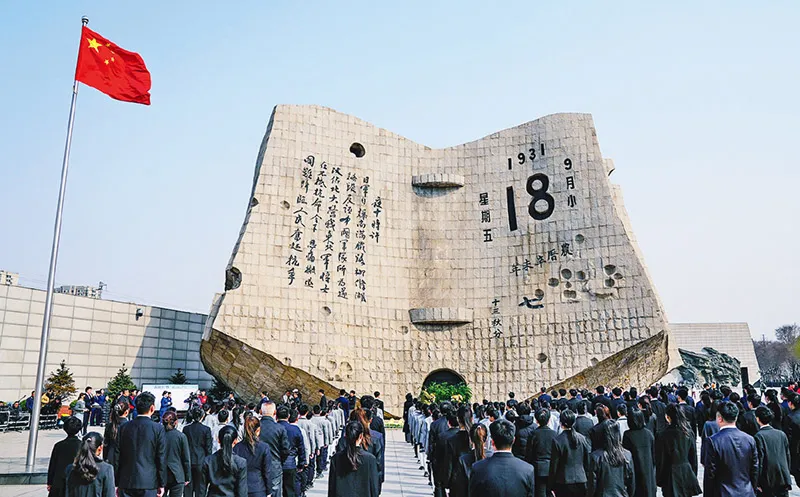 九一八事变是中国人民抗日战争的起点,同时揭开了世界反法西斯战争的序幕。图为2025年4月4日,“清明时节忆忠魂 抗战精神永传承——2025年清明节主题铭记活动”在辽宁沈阳“九·一八”历史博物馆残历碑广场举行。 人民图片 邹新江/摄