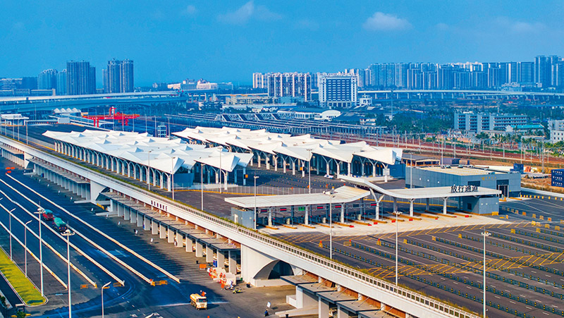 今年底,海南自由贸易港将实现全岛封关运作,这是海南打造高水平开放型经济的“关键一跃”,标志着海南自由贸易港建设进入全面制度型开放的新阶段。图为2025年2月6日拍摄的海口新海港和南港“二线口岸”集中查验场所建设项目,该项目是海南自由贸易港封关运作的重点项目。 人民图片 杨忠凯/摄