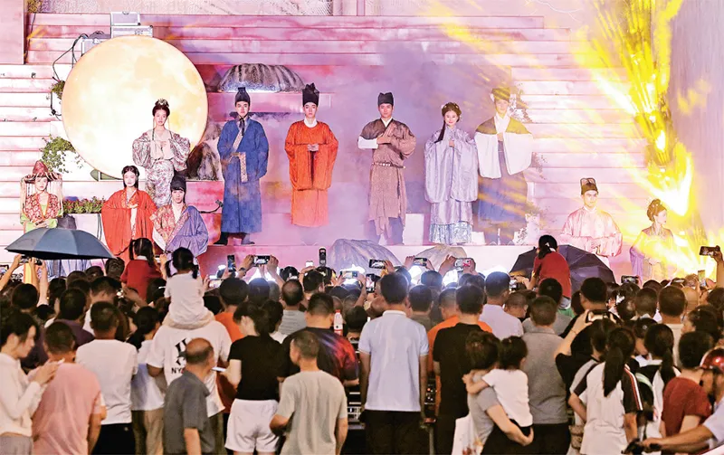 2005年7月,时任中共浙江省委书记的习近平同志亲自部署推动实施文化保护工程,实现浙江文化遗产和民族民间艺术的积极抢救、科学保护、合理利用和有效管理。图为2024年9月14日,浙江省杭州市临安区衣锦街经过综合整治后重新开街,举行国风主题巡游活动。 浙江省委宣传部供图