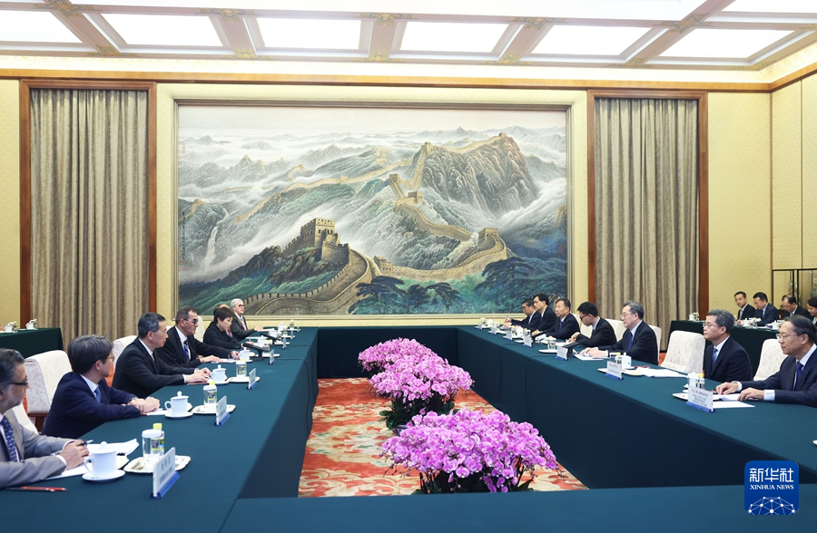 8月28日,中共中央政治局常委、国务院副总理丁薛祥在北京会见亚洲开发银行执行董事访问团。新华社记者 刘卫兵 摄