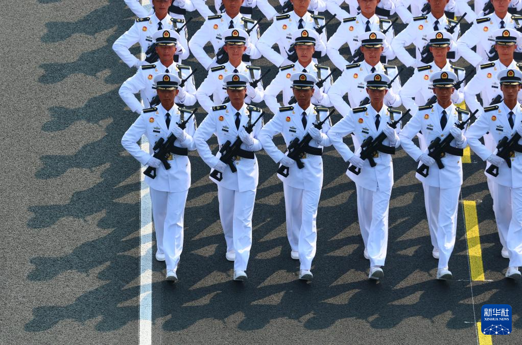 9月3日,纪念中国人民抗日战争暨世界反法西斯战争胜利80周年大会在北京隆重举行。这是中国人民解放军海军方队接受检阅。
