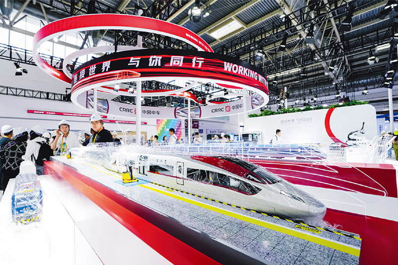 推动内外贸一体化发展能够有效联通两种资源、两个市场,有利于充分发挥我国拥有世界最完整产业体系的独特优势,提升产业链供应链稳定性。2025年7月16日至20日,以“链接世界 共创未来”为主题的第三届中国国际供应链促进博览会在北京举行。图为7月14日在此次博览会先进制造链展区拍摄的中国中车展位。 新华社记者 鞠焕宗/摄