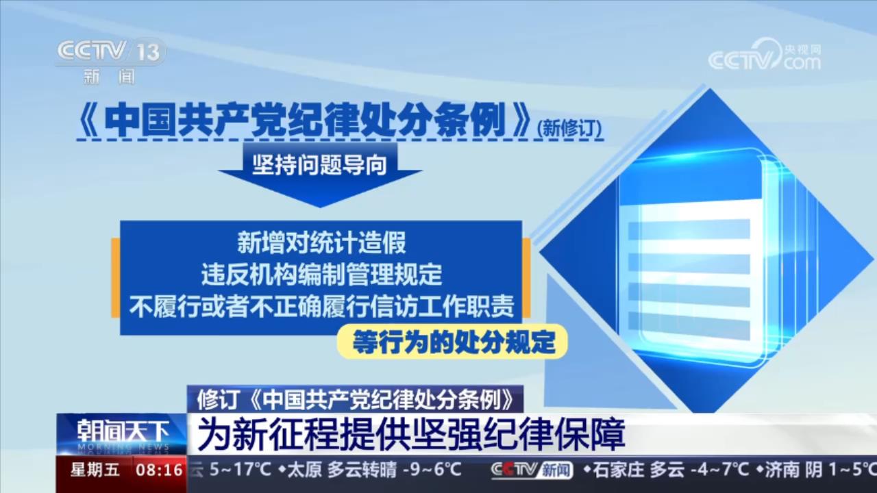 央视网消息:新修订的《中国共产党纪律处分条例》将于2024年1月1日起施行。党的十八大以来,对《条例》第三次修订。修订后的《条例》共158条,与上次修订相比,新增16条,修改76条。