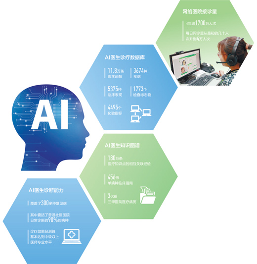 广东省第二人民医院技术人员告诉记者,“叮呗医生”是依托大数据和人工智能开发的一款智慧医疗应用。它汇集整理了11.8万多条医学词条、3674种疾病、5375种临床表现、4495个化验指标、1773个检查标志物、180万条医疗知识点的相互关联经验、456份单病种临床指南、3亿份三甲医院医疗病历等庞大的诊疗数据库和知识图谱;并通过深度学习形成了自主诊断能力。田军章介绍,目前“叮呗医生”已经覆盖了300多种常见病,囊括了普通社区医院日常诊断的90%的病种;而其诊疗效果,经测算基本达到中级以上医师专业水平。