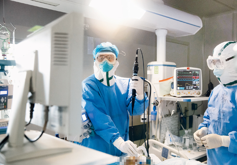 2020年3月2日,武汉市第一医院ICU病房,医护人员使用人工膜肺氧和器(ECMO)抢救新冠肺炎重症患者。湖北日报全媒记者 蔡俊/摄