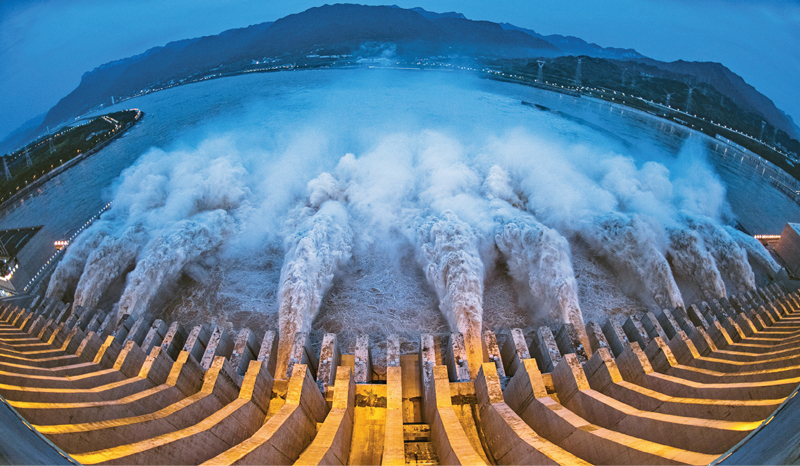 三峡工程是迄今为止世界上规模最大的水利枢纽工程。三峡工程运行持续保持良好状态,防洪、发电、航运、水资源利用等综合效益全面发挥。图为2020年8月19日,长江三峡水利枢纽工程开启泄洪深孔泄洪。 新华社记者 肖艺九/摄