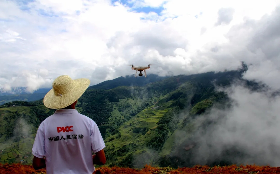 图为人保财险四川分公司农险工作人员运用无人机查勘,快速精准定损理赔,助力农民抵抗风险、减少损失。 中国人民保险集团供图
