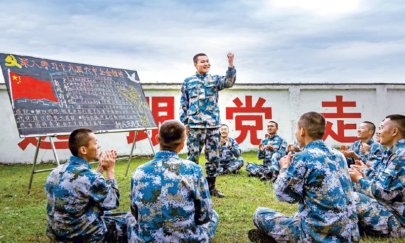 近期,全军将学习宣传贯彻党的十九届六中全会精神作为重大政治任务有力有序推进。图为海军陆战队某大队组织新兵学习全会精神,引导新兵坚定理想信念、矢志建功军营。 孙宏韬/摄