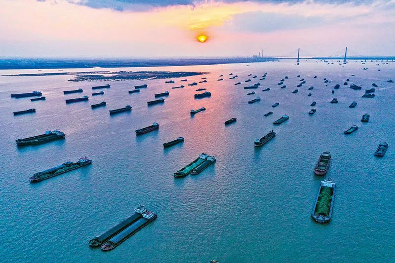 向江向海向未来,江苏省南通市的高质量发展彰显长三角一体化发展新气象。这是2021年10月25日无人机拍摄的长江南通段。 新华社记者 李博/摄