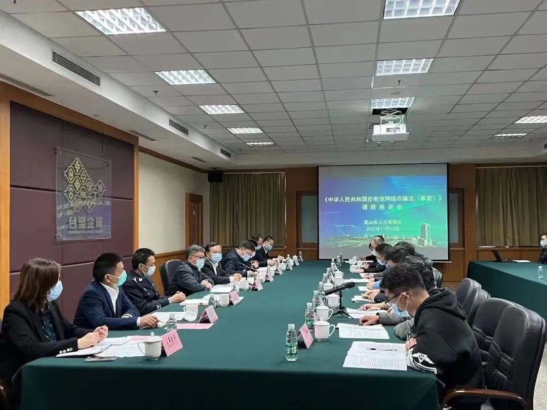 2021年11月19日,昆山基层立法联系点召开反电信网络诈骗法草案调研座谈会,征询一线公安干警、电信诈骗受害者、网民、有关部门和企业代表立法建议。 江苏省昆山市人大常委会基层立法联系点供图