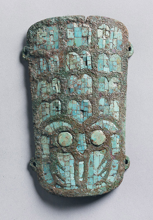 二里头遗址,全国重点文物保护单位,中华文明探源工程首批重点六大都邑之一。遗址位于河南省洛阳市偃师区西南9公里外的伊洛河故道北沿(今洛河之南),其年代约为距今3800~3500年。二里头遗址是探索中国早期文明和国家起源,研究夏文化、夏商王朝纪年及其分界的关键性遗址。图为二里头文化镶嵌绿松石兽面纹青铜牌饰,牌饰的兽面纹开创了后代商周青铜器兽面纹母题的先河。国家文物局供图