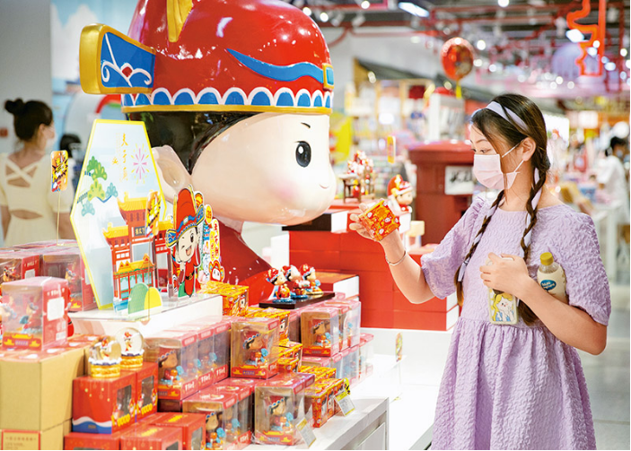 国家统计局发布数据显示,2021年我国全社会消费品零售总额超过44万亿元。随着经济规模不断攀升,我国逐步形成纵深广阔的强大国内市场。图为2021年10月5日,游客在南京夫子庙景区内的一家商店选购文创产品。求是图片 苏阳/摄