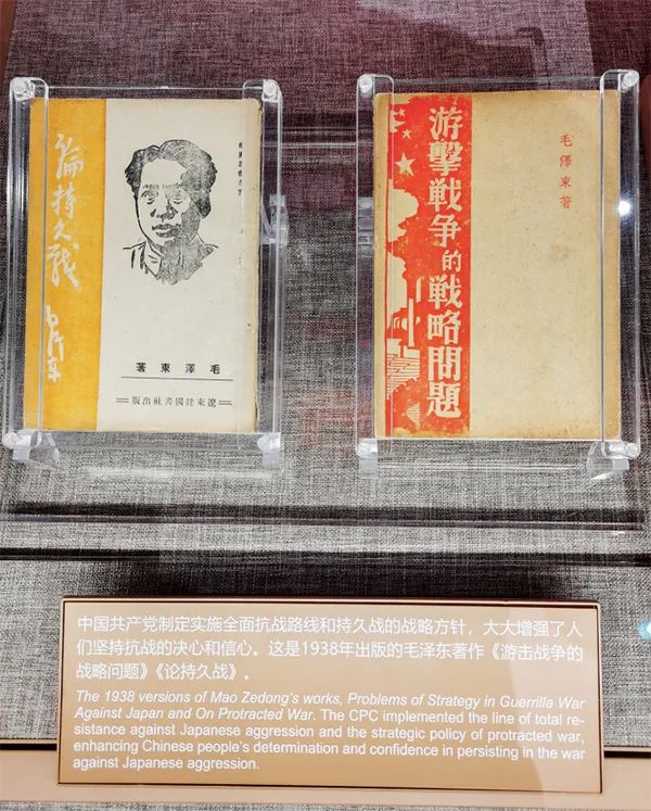 图为上海中共一大纪念馆展出的1938年出版的毛泽东著作《论持久战》和《游击战争的战略问题》。 人民视觉供图