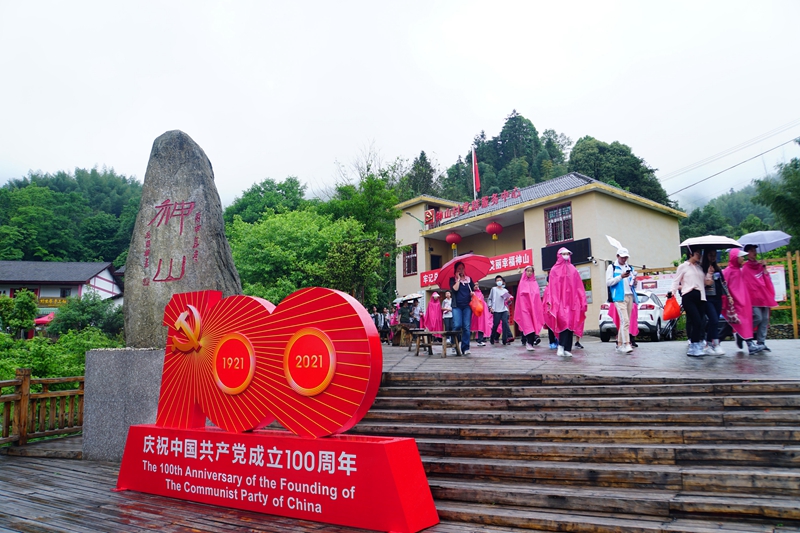 图为在中国共产党百年华诞前夕,游客们冒雨在神山村参观学习,感受红色文化、体验山村新貌。李劼摄 江西日报社供图