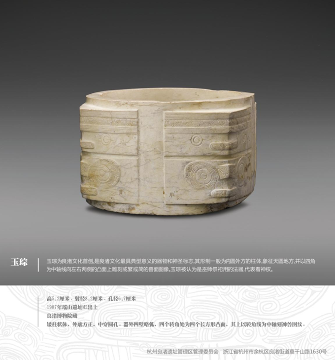 良渚文明的一个重要特征是玉器文明。五千多年前的良渚先民,用他们独特智慧创造出类型丰富、制作精美的玉器,令人叹为观止。这些玉器不仅仅是装饰品,更是体现了王权和神权拥有者对稀有资源的控制和垄断,形成了以琮、璧、钺为代表的一整套玉器使用制度,用来明确尊卑、划分等级、区别身份、显示权力,反映出当时已经形成了一套不同阶层人群的用玉制度和社会规范。
