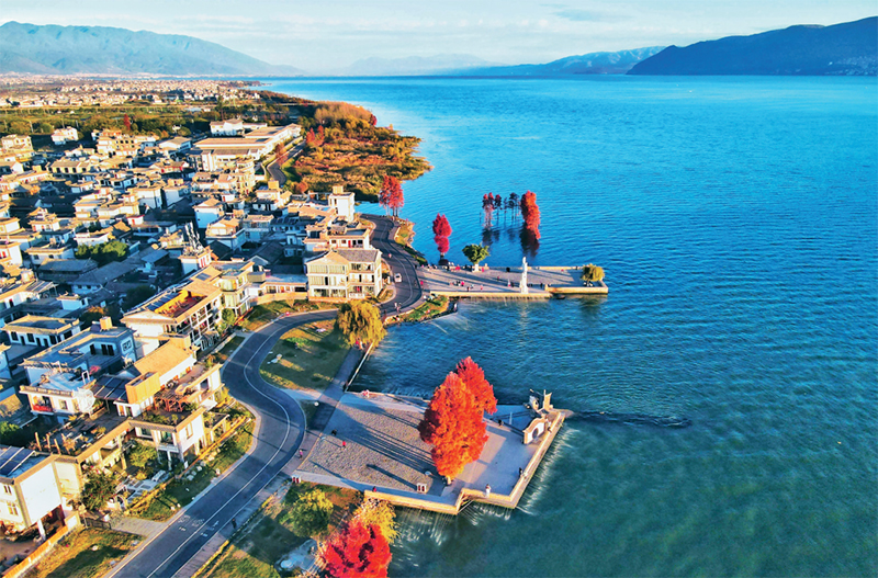 图片云南省牢记习近平总书记对洱海保护“立此存照,过几年再来,希望水更干净清澈”的嘱托,加大洱海保护治理力度,取得明显成效。图为2022年11月28日,大理白族自治州洱海生态廊道上的龙龛码头。 云南日报供图 黄兴能/摄