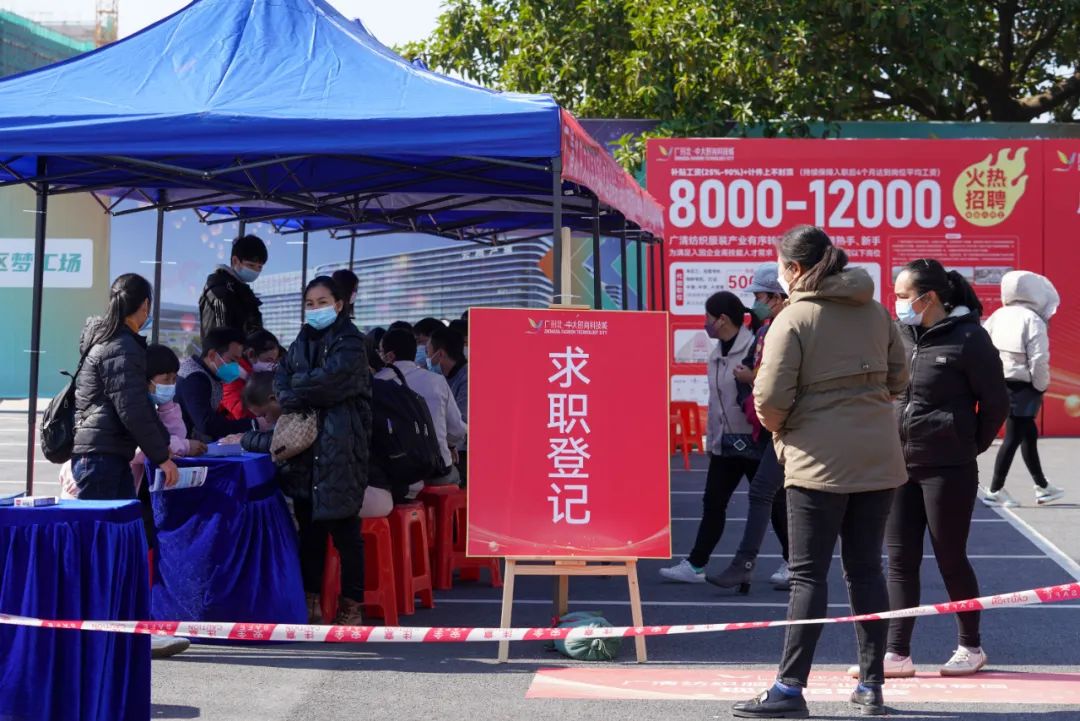 图为2023年1月29日,一场纺织服装专场招聘在清远市广州北·中大时尚科技城广场内举行。清远日报记者 邱炜民 摄