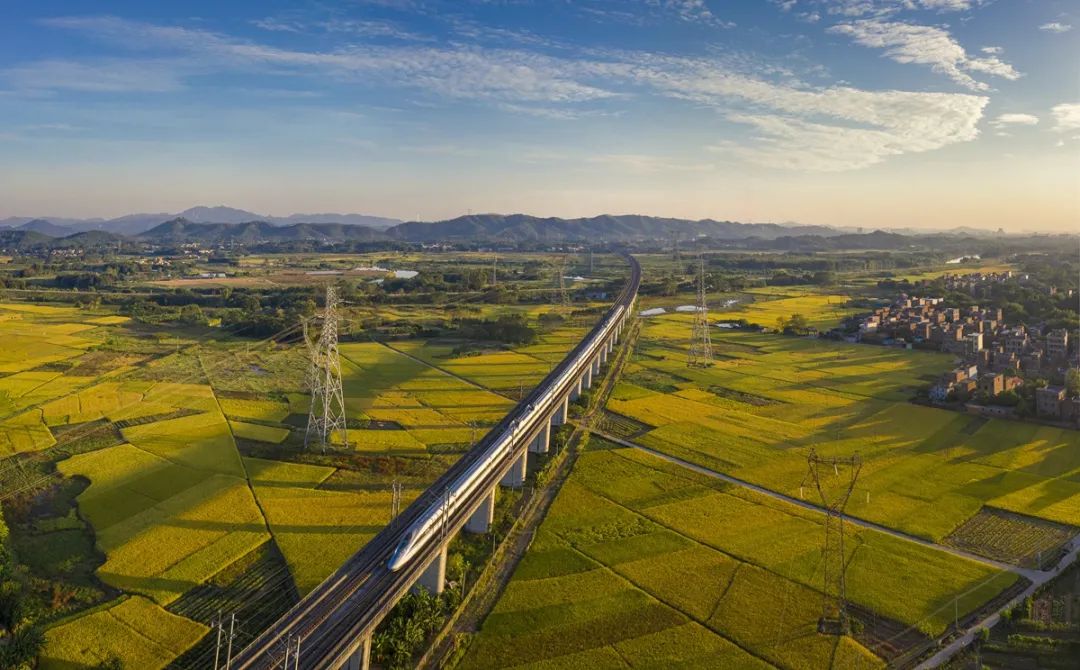 武广高铁洲心段,高铁从金色的田园穿梭而过。清远日报签约摄影师 伍志勇 摄