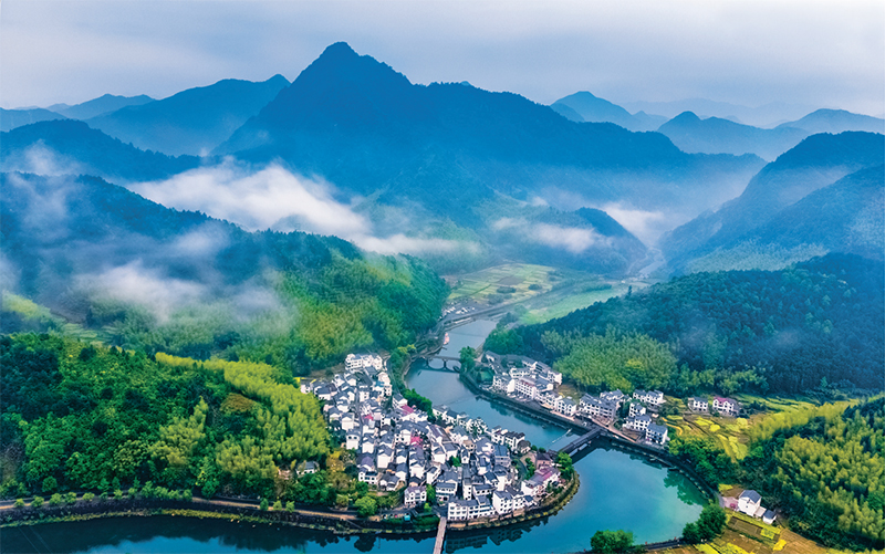 浙江省杭州市淳安县下姜村在推进“千万工程”中,坚持党建引领,探索共同富裕新路径,从做优环境、盘活资源、完善机制入手,走生态优先、绿色发展之路,实现了从“穷脏差”到“绿富美”的蜕变。图为杭州市淳安县下姜村。 浙江日报社供图