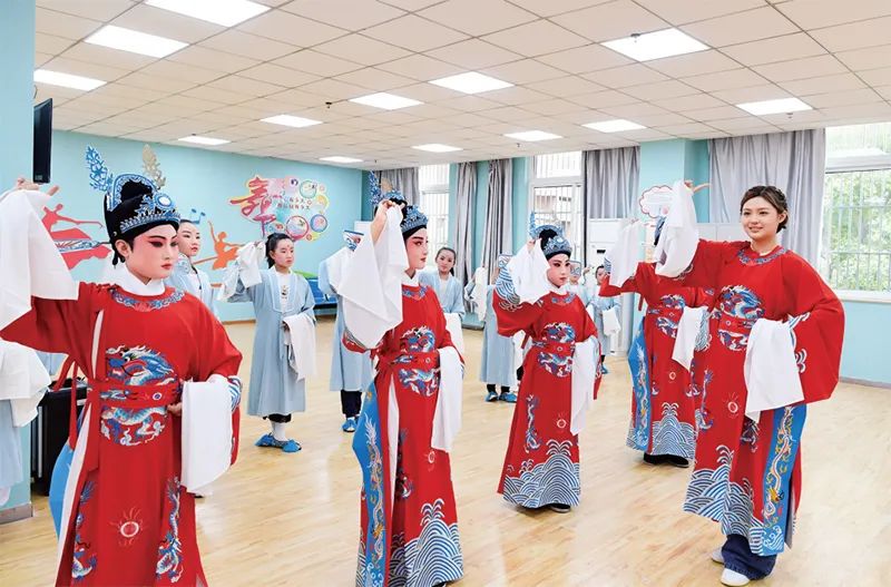近年来,安徽省合肥市肥西县桃花镇依托社区新时代文明实践站积极开展文化传承特色活动,通过设立黄梅戏兴趣班,聘请戏曲老师免费为小朋友进行黄梅戏教学辅导,让孩子们感受传统戏曲的魅力。图为老师在新时代文明实践站指导小朋友学习黄梅戏动作。新华社发 徐勇/摄