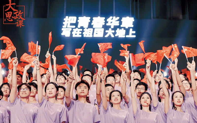 2023年10月14日,“把青春华章写在祖国大地上”大思政课网络主题宣传和互动引导活动在四川大学举行。图为现场大学生齐唱歌曲《我爱你,中国》。人民网、四川省委网信办供图