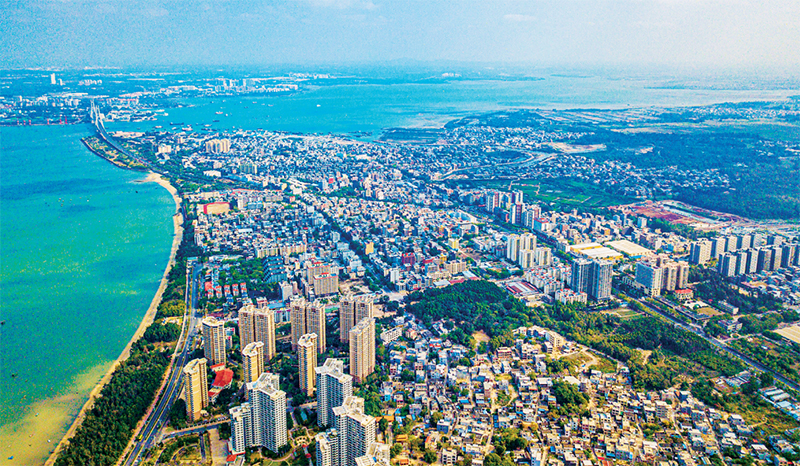 十年来,自贸试验区坚持以深化改革开放驱动产业创新发展,建成了一批世界领先的产业集群。图为海南自贸港重点园区——洋浦经济开发区所在的环新英湾地区。新华社记者 蒲晓旭/摄