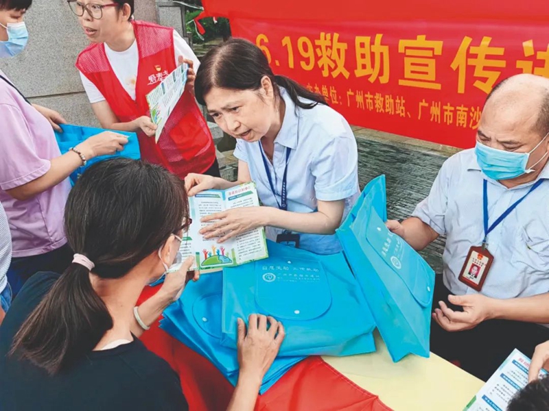 2023年6月19日是第十一个全国救助管理机构“开放日”,主题为“科技赋能筑大爱 温情救助守初心”。图为“开放日”当天,广东省广州市救助管理站工作人员深入街巷、走进社区,开展政策宣讲、现场咨询等活动,向市民宣传救助管理政策。 广州市民政局供图