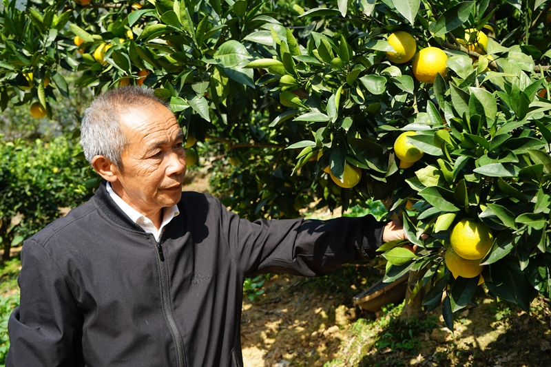 图为毛相林在柑橘园中查看柑橘长势。新华社记者 李晓婷/摄