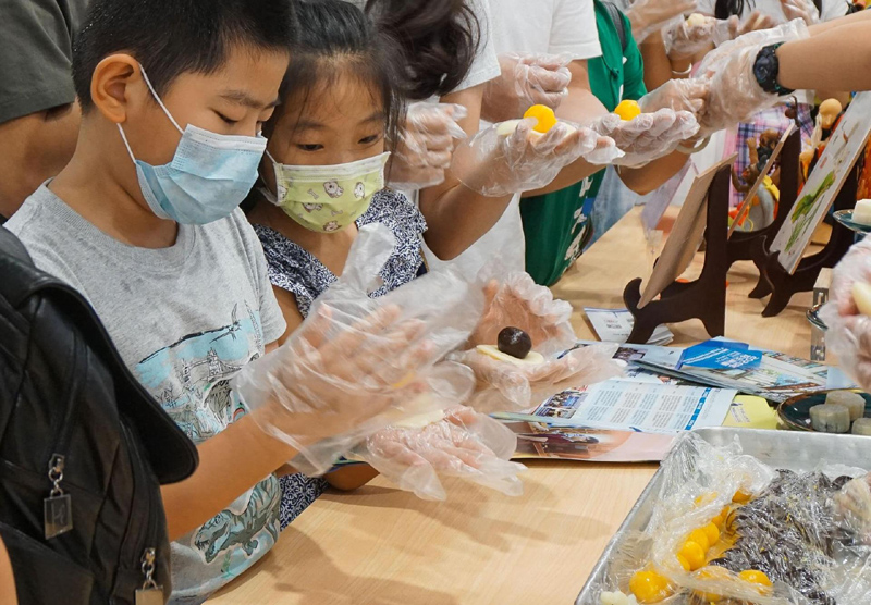 游客在广州市北京路步行街“粤菜师傅项目技能交流展示区”体验做月饼(10月1日摄)。新华社记者 刘大伟 摄
