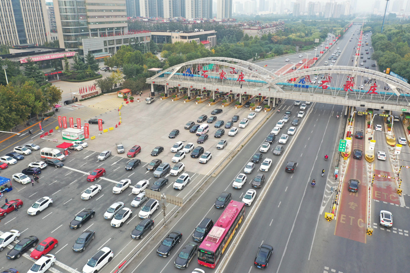 车辆在S9902新元高速石家庄裕华路口通行(10月8日摄,无人机照片)。新华社记者 朱旭东 摄