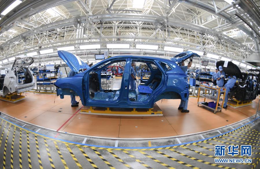 在上汽集团乘用车宁德基地总装车间,工人在装配生产线作业(2020年9月15日摄)。新华社记者 宋为伟 摄
