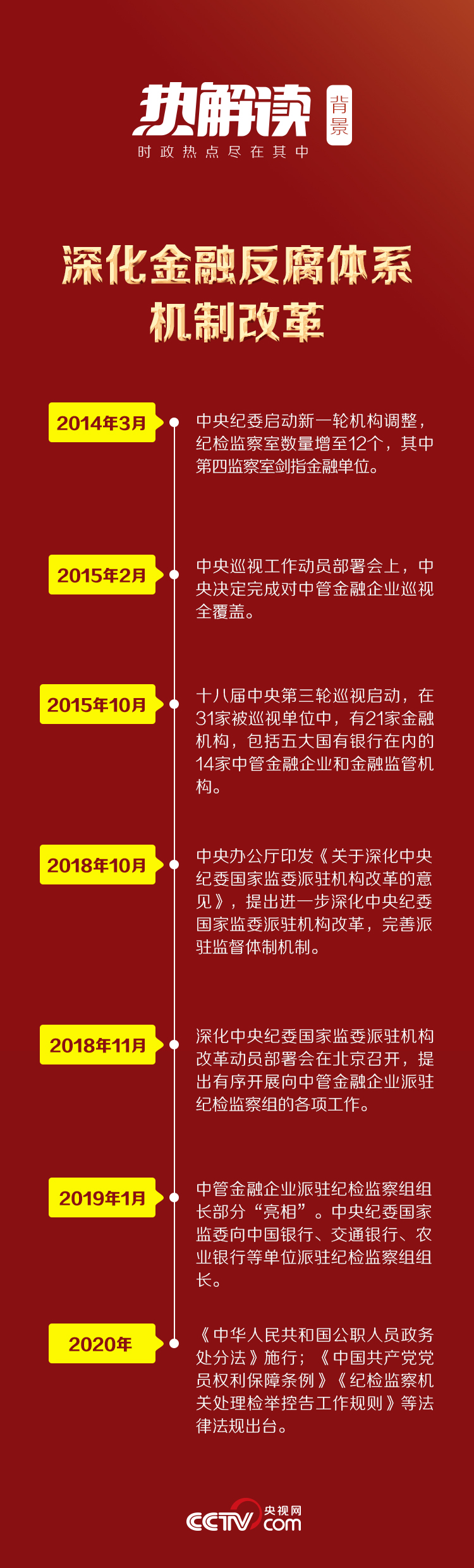 2019年十九届中央纪委三次全会透露,中管金融企业内设纪委改为中央纪委国家监委派驻机构。